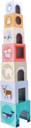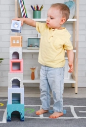 Gradnja stolpa iz različno velikih delov je brezčasna zabava, ki otroke hkrati zabava in uči. Ta piramida združuje trd karton in les, ima gladke robove ter je izdelana iz netoksičnih, varnih materialov s CE skladnostjo – idealna izbira za prvo gradbeno igračo.
