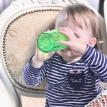 Poseben vložek v notranjosti lončka upočasni pretok tekočine, zato se otrok varno nauči piti iz odprtega lončka brez nastavkov in slamk.