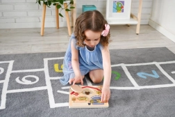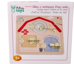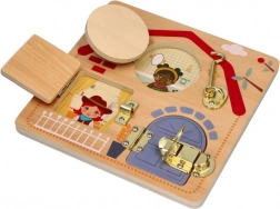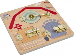 Tabla ponuja več vrst zapiral, ki jih otroci postopoma osvojijo. Vsak mehanizem prinaša nove izzive ter uri prstno spretnost in potrpežljivost.