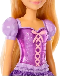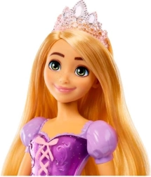 Lutka RAPUNZEL v ikonični vijolični obleki zasije na vsakem kraljevem plesu. Bleščeči zgornji del in snemljivo krilo z edinstvenim vzorcem poudarjata njen princeskin slog, medtem ko tiara in čeveljčki dopolnijo popoln videz. Zahvaljujoč sklepom zlahka zavzame različne poze in je pripravljena na vsako pustolovščino.