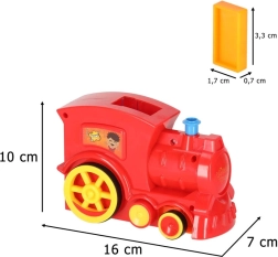 Ta barvita lokomotiva z dozirnikom ploščic sama polaga domino v stalnih razdaljah, vsak položaj pa naznani z zvokom. Otroci lahko smer vožnje enostavno izberejo z obračanjem dimnika in tako ustvarjajo raznolike poti in vzorce. Žive barve in privlačen dizajn pritegujejo pozornost in motivirajo k dolgi igri.