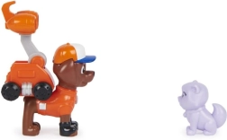Odpravite se na reševalno misijo s kipcem psička iz priljubljene serije Patrola tačkih tačk. Ta psiček, oblečen v uniformo in kapo tovornjakarja, je pripravljen na akcijo.