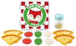 Ta zabavni komplet za pico omogoča malim kuharjem, da sestavijo celo pico iz med seboj povezljivih kosov in jo dopolnijo z lepljivimi sestavinami. Zahvaljujoč škatli za pico deluje igra realistično in spodbuja igro vlog.