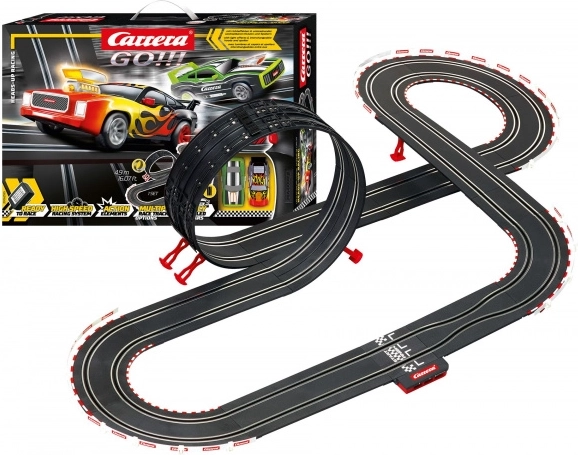 Zgradite si sanjski krog in se podajte v dirko! Avtocesta CARRERA GO!!! Heads‑Up Racing v merilu 1:43 ponuja dinamično vožnjo z loopingom, mostom in tehničnimi odseki. Dve podrobno potiskani muscle car vozili, Turbo funkcija na upravljalnikih in magneti za boljši oprijem obljubljajo napete boje kolo na kolo.
