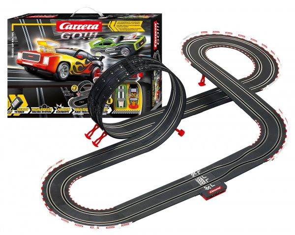 Doživite adrenalinske dirke z avtocesto CARRERA GO!!! Heads‑Up Racing dolžine 4,9 m. Set vsebuje 2 muscle car vozili, looping, most, zožitev proge in mehanski števec krogov. Zahvaljujoč Turbo upravljalnikom, dvojnim krtačkam in magnetom imajo avtomobili odličen oprijem in hitrost. Enostavna sestava, stabilna konstrukcija in bogata oprema zagotavljajo maksimalno zabavo za otroke od 6 let.
