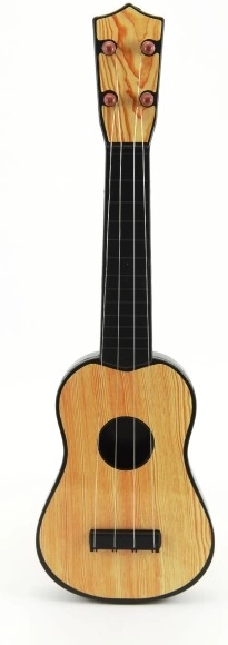 Inštrument realistično posnema videz lesene kitare v dveh stilskih izvedbah – svetel in temen les. Idealno za igranje doma, v vrtcih ter kot darilo za male začetnike.
