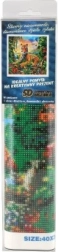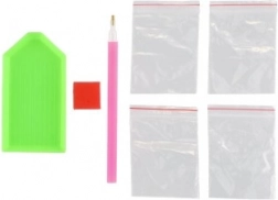 Komplet vsebuje vse potrebno za diamantno slikanje: platno, aplikacijsko pero, pladenj, vosek in pisane kamenčke.