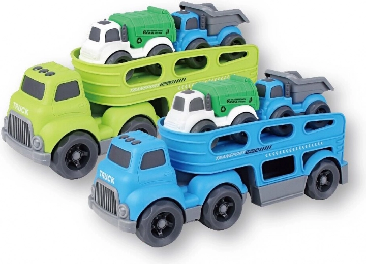 Iščete način, kako enostavno in učinkovito prevažati avtomobilčke? Ta robustni vlačilec vam to omogoča! Meri 30 cm, kar nudi dovolj prostora za namestitev do treh avtomobilčkov, ki so priloženi v paketu. Vlačilec je na voljo v modri in zeleni različici, tako da se za vsakogar najde prava izbira.