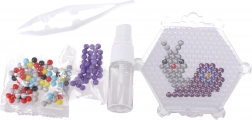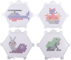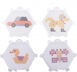 Heksagonalne podloge z izboklinami držijo perlice na mestu in pomagajo ustvariti podrobne motive, kot so avto, kužek, račka ali metulj.
