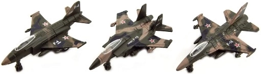 Uživajte v obilici letalske zabave z realističnimi lovskimi modeli za male pilote. Trpežna izdelava, podrobna kamuflaža in gladek tek koles podpirajo domišljijo in akcijsko igro.