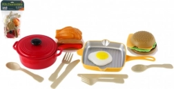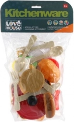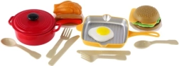Komplet kuhinjske posode, pripomočkov in živil je pripravljen za male kuharice in kuharje, ki želijo v svoji kuhinjici pripravljati jedi. Dimenzija pakiranja: 17 x 10 x 12 cm Primerno od 3 let naprej