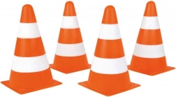 Štirje oranžni stožci so idealni za igro z žogo, avtomobilčki ali kot pomoč pri popravilih. Ustvarite z njimi prostor za športne aktivnosti ali omejite varnostno območje.