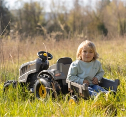Traktor raste z vašim otrokom – sedež nastavite v 3 položajih, zato je primeren za otroke različnih višin. Verižni pogon je zanesljiv in zaščiten, velika plastična kolesa zmorejo travnik in vrtne poti. Mehanska hupa doda zabavo in varnost, usklajeni barvni detajli pa zaokrožijo moderen videz.