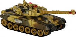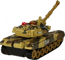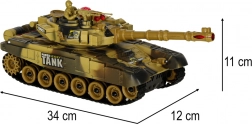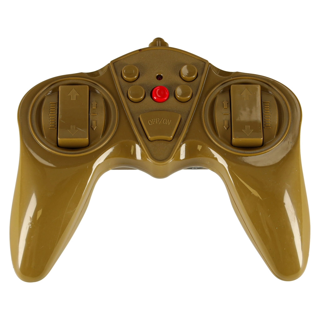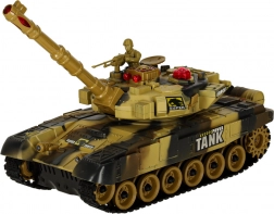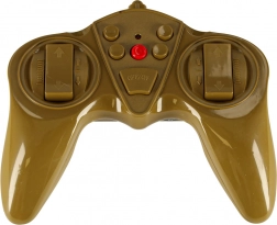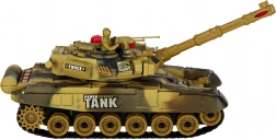 RC tank v puščavski izvedbi ponuja gladko vožnjo naprej/nazaj, vrtenje na mestu in vrtljivo kupolo za 180° na vsako stran (skupaj 360° strelski sektor). Mehke gumijaste gosenice zagotavljajo dober oprijem na različnih podlagah. Ob strelu tank simulira realističen povratni sunek ter spremljevalne zvoke motorja in streljanja.