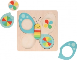 Pisan metulj spodbuja prepoznavanje barv in oblik, motivira k igri ter razvija ustvarjalnost in zbranost.