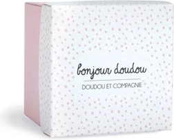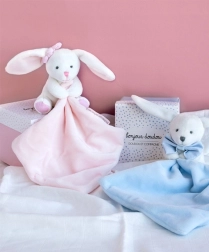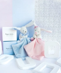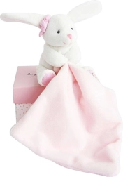 Ta prikupni zajček v elegantni darilni škatlici je nujnost za vsakega novorojenega dojenčka. V beli izvedbi z roza ninico je zajček izjemno mehak in hitro postane najboljši spremljevalec za vašega otroka. Majhna odejica v šapi služi kot lahko oprijemljiva ninica.