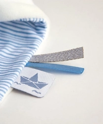 Odkrijte čar Zajčka Mornarja, ki je dobavljen v prekrasni darilni škatli, ki vzbuja občutek sodobnosti in prestiža. Ta ljubki zajček je oblečen v modro-belo črtasto majico in krasi ga majhna krona. V roki drži odejico, ki služi kot ninica, enostavna za prijem malih ročic vašega otroka.