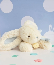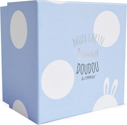 Ta kremno obarvan plišasti zajček z modrimi ušeski je priložen v čudoviti darilni škatli, ki izžareva modernost in razkošje. Igrača ni le prijetna na dotik, ampak tudi izpolnjuje evropske standarde CE. Odlična je kot darilo za novorojenčka.