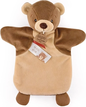 Plišasta ročna lutka Medvedek je zasnovana tako, da služi ne le kot mehka igrača, temveč tudi kot pripomoček za pripovedovanje zgodb, s čimer spodbuja otroško domišljijo.