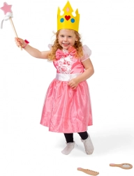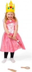 Spremenite vsako igro v kraljevsko pustolovščino s tem čarobnim kompletom za male princese. Rožnato obleko z nežnimi detajli in mrežastimi rokavi dopolnjuje krona, ogledalce, glavnik in čarobna paličica. Komplet spodbuja ustvarjalnost, igro vlog in razvoj domišljije. Testirano po standardih EN71 in REACH.