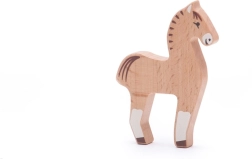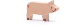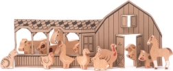 Ta kakovosten set vključuje priljubljene domače živali: konjička, žrebička, kozo, kužka, prašička, telička, kravo, purana, gos, raco, kokoš, ovčko, zajčka in mačko. Zaradi skrbne izdelave iz bukovega lesa so figurice prijetne na otip, stabilne in idealne za vsakodnevno igro.
