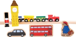 Del seta so podrobni leseni elementi Big Bena, rdeče telefonske govorilnice, dvonadstropnega avtobusa in figuric – idealno za tematske zgodbe s PADDINGTONOM.