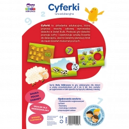 Igra Številke iz serije Mali Odkritelj Trefl je odlično sredstvo za začetek pustolovščine z otrokom in številkami. Otroci med igranjem izboljšajo logično razmišljanje in širijo besedni zaklad. Zaradi enostavnih pravil in številnih možnosti igre, kot so sestavljanke, tekmovanja ali iskanje številk, je idealna za predšolske otroke. Na zabaven način podpira komunikacijo, vidno-motorično koordinacijo, logično-matematično razmišljanje, spomin, koncentracijo, domišljijo in kreativnost.