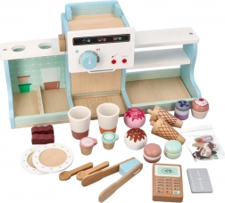 Stilni otroški komplet za igro kavarne in sladoledarne spodbuja domišljijo in socialne veščine. Vsebuje dodatke za pripravo »kave« in »sladoleda«, idealno za male bariste od 3 let. Kompaktna izvedba z merami 42 × 15 × 22 cm se poda v vsako otroško sobo. Kreativna igra vlog, kakovostna lesena izdelava in bogati dodatki za ure zabave.