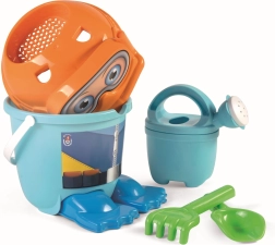 - Vedriček, sito v obliki potapljaške glave, 2 modelčka v obliki potapljaških plavuti, zalivalka, lopatka, grabljice