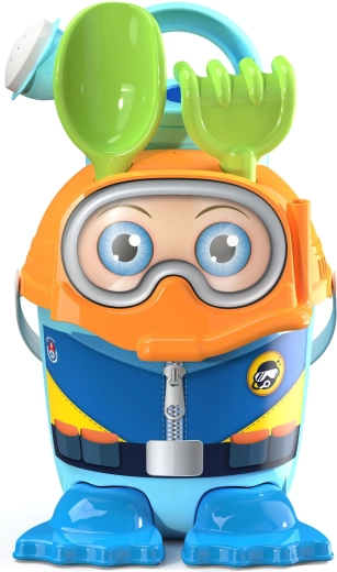 Odkrijte zabavo na plaži in v peskovniku s 7-delnim kompletom za pesek z motivom potapljača. Izdelano v Italiji iz kakovostnih plastik, ki so trpežne in varne za otroke od 12 mesecev dalje. Praktičen vedriček s premerom 18 cm, izvirno sito v obliki potapljaške glave in modelčki v obliki plavuti zagotavljajo veliko ustvarjalne zabave. Lahka zasnova (0,371 kg) in popolna oprema vključno z zalivalko, lopatko in grabljicami.