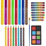 Komplet 33 delov ponuja široko paleto barv in orodij za slikanje, risanje in barvanje – idealno za začetnike.