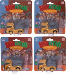 Kompakten gradbeni tovornjak na vztrajnik bo razveselil male gradbenike z realističnim videzom in enostavnim upravljanjem. Na voljo so štiri priljubljene različice – kiper, mešalec, žerjav in bagar. Zaradi mer 8,5 × 5 × 5,5 cm odlično sede v otroško roko in je idealen za igro doma ali na poti.