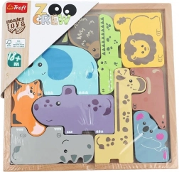 Odkrijte pametno zabavo z leseno miselno sestavljanko TREFL ZOO CREW. Robustni leseni koščki v obliki živalic odlično sedejo v otroško dlan in po zaslugi obrisov na dnu škatlice se otroci zlahka naučijo koščke pravilno zložiti. Starejši otroci in odrasli lahko težavnost povečajo tako, da obrise prekrijejo ali pa vse koščke sestavijo v kvadrat zunaj škatlice.