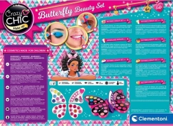 Odkrijte ustvarjalni svet ličenja z metuljskim kozmetičnim setom Crazy Chic. Otroci lahko varno preizkusijo ličenje oči in ustnic, začasno barvanje las ter preprosto manikiro. Kompaktna zasnova z ogledalcem ohranja vse pregledno na enem mestu in je idealna za na pot.