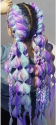 Sintetični lasje ombré v vijolično–modrem prehodu so odlična izbira za trendovsko preobrazbo brez trajnih sprememb. Z njimi ustvarite polne in izrazite kite, čope ali kreativne festivalske pričeske. Vlakna so mat in realistično posnemajo naravne lase, hkrati pa so lahka in udobna za celodnevno nošenje.