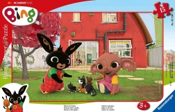 Sestavljanka Ravensburger s priljubljenim likom BING in prikupnimi muckami bo razveselila vse male graditelje. Zahvaljujoč podlagi z okvirjem otroci sestavljajo sliko neposredno v pripravljeno polje, kar jim daje samozavest in veselje ob končanem delu. Velikost sestavljene sestavljanke je približno 25 × 14,5 cm – idealno za otroško sobo in za na pot.