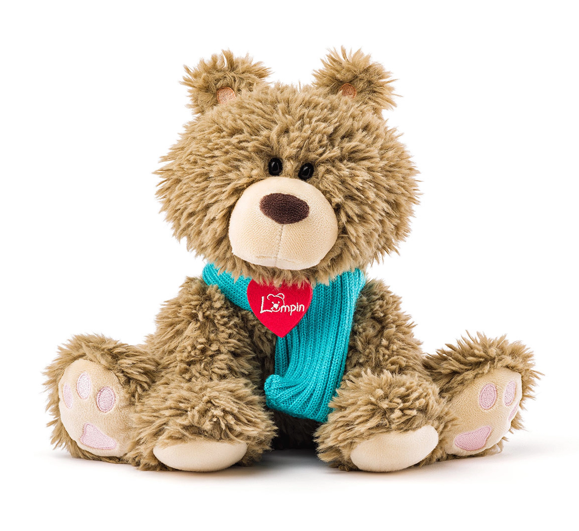 Plišasti medvedek z barvitim šalom, rjav, 55 cm